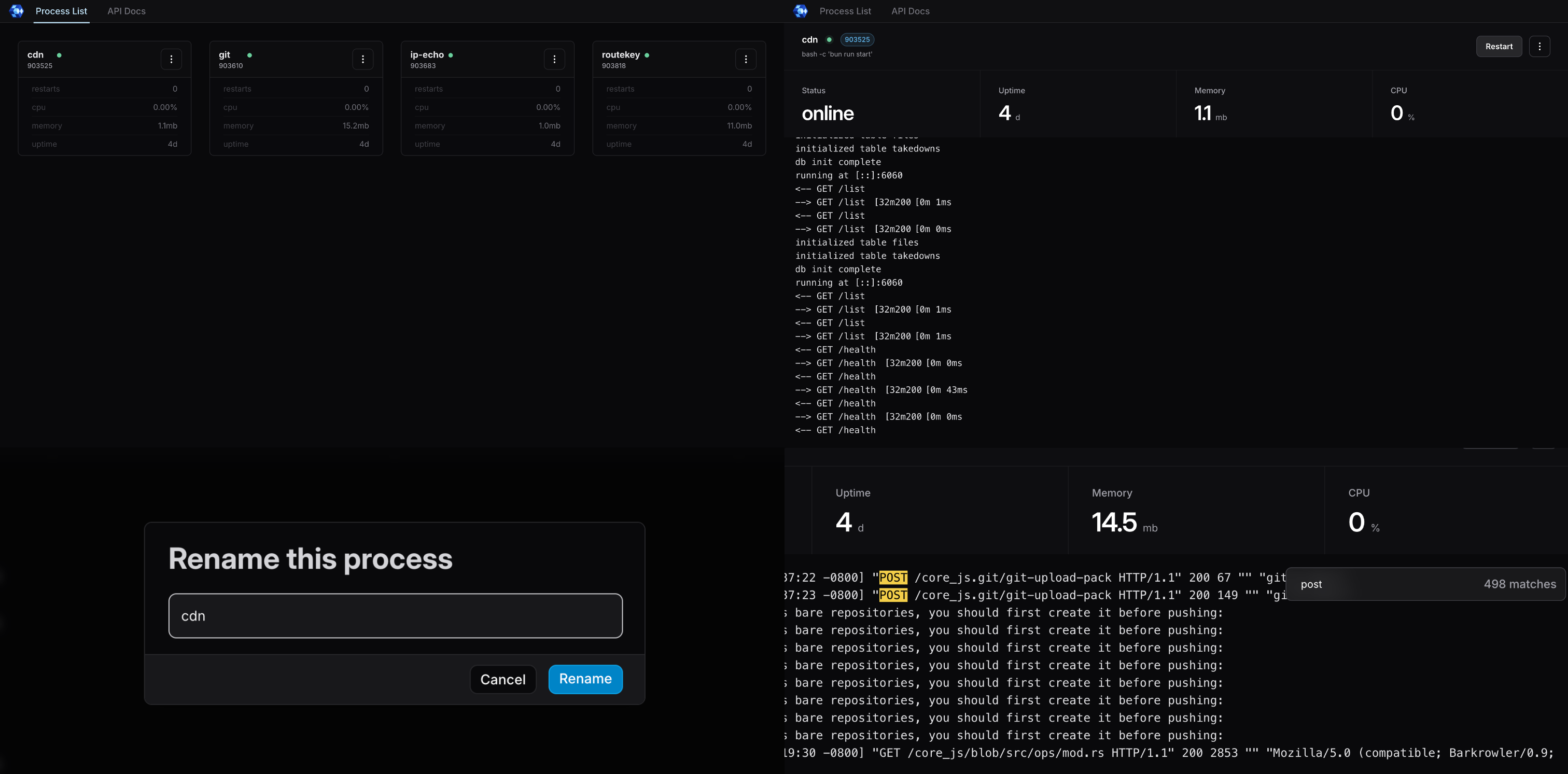 Use HTTP/rust api to control processes.